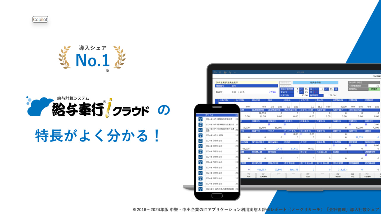 給与奉行クラウドの製品紹介デモ動画です。給与業務のデジタル化についてご紹介します! <詳細> 0:34~概要説明 ・給与奉行クラウドの業務対応範囲 1:24~製品紹介デモ ・給与計算(計算式設定)、明細書出力 ・銀行振込FBデータ作成、管理資料出力 ・社会保険、電子申請 ・年末調整 10:35~給与奉行クラウドのココがいい! 株式会社オービックビジネスコンサルタント